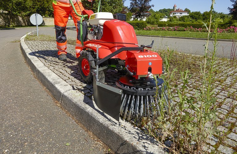 Spezialgerät Wildkrautbürste agria 8100 Wildkrautbürste. Für die schonende Beseitigung von Wildkraut entlang an Kanten, Mauern und auf Flächen!
