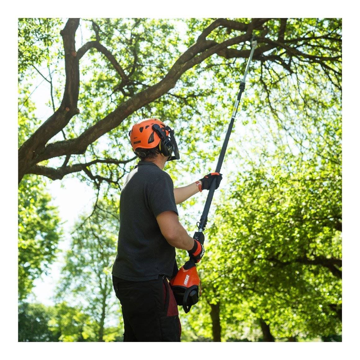 Der ECHO DPPT-2600LW Akku-Hochentaster ist der erste professionelle Teleskop-Hochentaster der X-Serie für anspruchsvolle Baumpflegearbeiten. Mit nur 5,0 kg Gewicht ist er über 2 kg leichter als vergleichbare Benzin-Hochentaster und bietet außergewöhnliche Manövrierbarkeit bei reduzierter Ermüdung. Der Teleskopschaft ist von 2,8 m bis 3,97 m ausziehbar und ermöglicht komfortables Arbeiten in Höhen bis zu 5 m. Vom Entasten von Bäumen über das Entfernen von Totholz und Sturmbruch bis zum Obstbaumschnitt – der DPPT-2600LW Akku-Hochentaster ist der ideale Begleiter für Profis in der Baumpflege, Obstbau, Kommunen sowie Land- und Forstwirtschaft. Dank des emissionsfreien und geräuscharmen Betriebs eignet er sich hervorragend für Arbeiten in lärmsensiblen Bereichen und Wohngebieten.