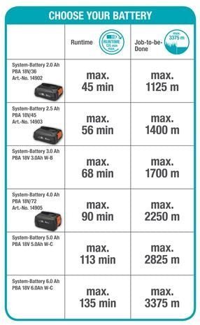 Mit dem im Set enthaltenen Akku, schafft der Trimmer eine Laufzeit von bis zu 56 Minuten, ein Ladegerät ist im Set ebenfalls enthalten.