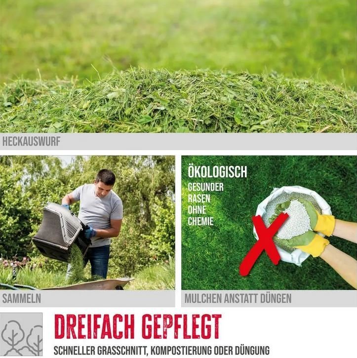 zum Mulchen kein Messerwechsel erforderlich, Mulchstopfen im Lieferumfang enthalten