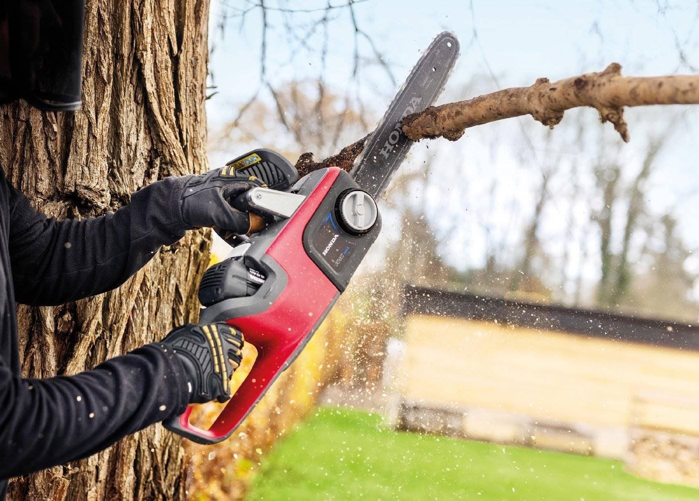 Die Kettenbremse bringt die Kette zum Stillstand, sobald ein ausreichend starker Rückschlag die Kettenbremse zum Auslösen bringt. Der Anwender wird so vor Unfällen durch den sogenannten Rückschlag geschützt.