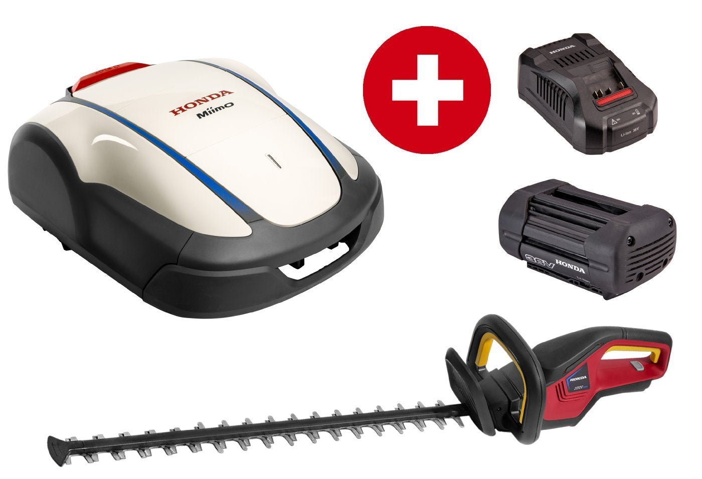 Honda Mähroboter „Miimo Live“ + gratis Akku-Handgerät im Set(Akku-Heckenschere HHH 36 BXB, 2 Ah Akku, Standardladegerät)