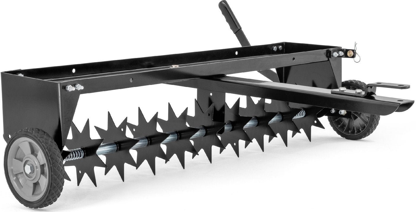 Der gezogene Rasenlüfter wird hauptsächlich hinter Rasentraktoren und Frontmähern verwendet. Die Messer sorgen für eine Lockerung der Bodenoberfläche, einen verbesserten Wasserdurchlass in den Boden und eine gute Versorgung der Rasenwurzeln mit Sauerstoff.