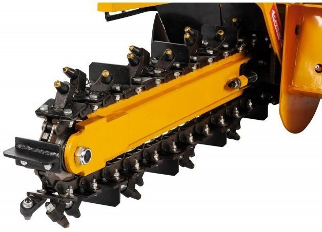 Die Lumag GF-800 ist eine leistungsstarke Grabenfräse zum Ausheben von schmalen Gräben zur Verlegung von Rohr- und Stromleitungen. Die robuste Bauweise und einfache Bedienung machen sie zu einem Muss für professionelle Anwender. Mit ihrem besonders langen Schwert kann die GF-800 eine maximale Grabtiefe von 60 cm und eine Grabbreite von 10 cm erreichen. Dabei sorgt eine Schnecke dafür, dass das ausgehobene Erdreich effektiv beseitigt wird und ein besonders sauberes Ergebnis erzielt wird. Die Kette der Grabenfräse ist mit Hartmetall bestückten Zähnen ausgestattet, die auch härtestes Erdreich mühelos zerkleinern. Dank ihrer hohen Leistungsfähigkeit und Robustheit ist die GF-800 eine zuverlässige und effektive Wahl für den professionellen Einsatz.