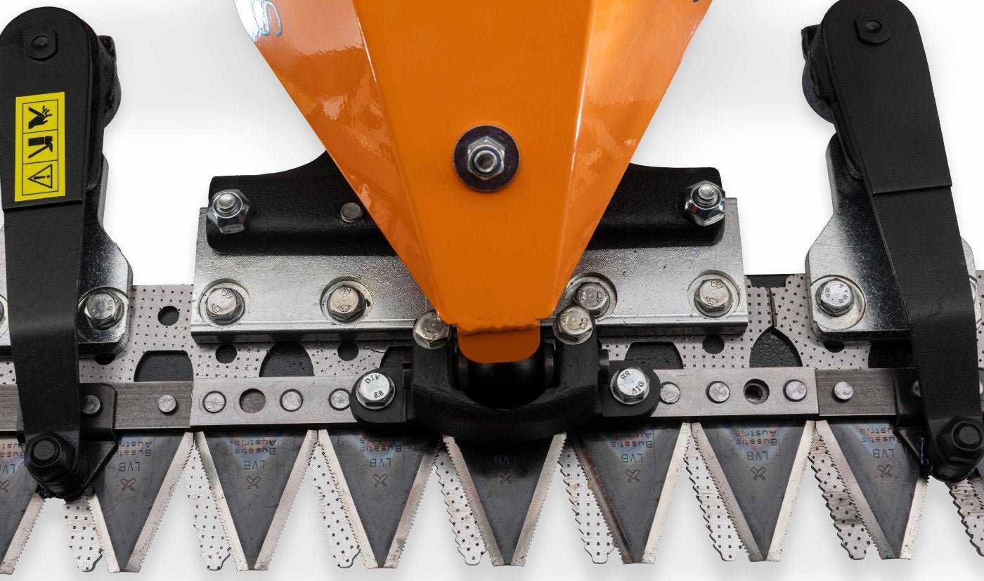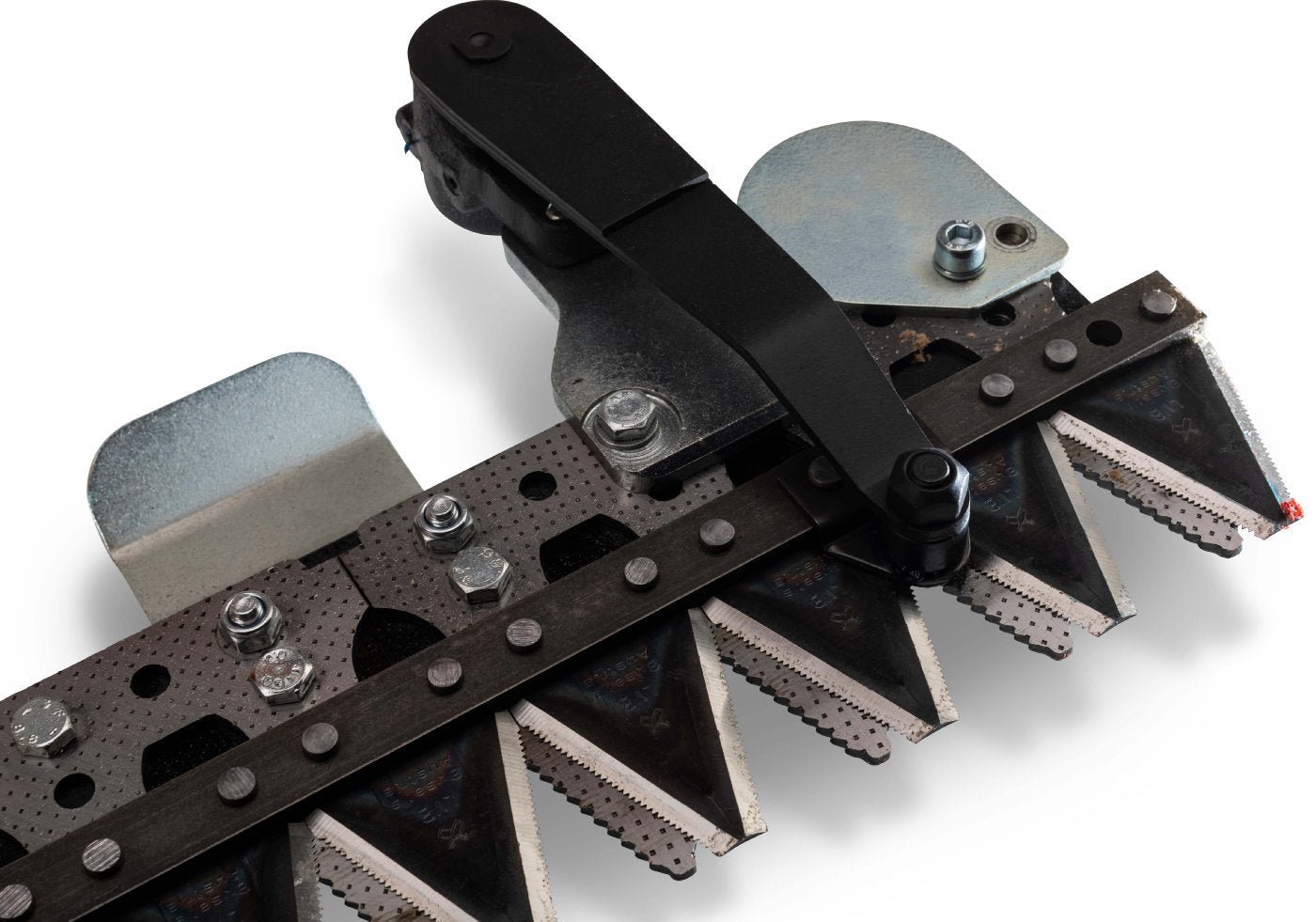 Die S46FLORIS Einzelmesser Mähbalken arbeiten mit einem festen Untermesser und einem beweglichen Obermesser. Dadurch sind sie unempfindlicher gegen Fremdkörper und lassen sich gut im Kommunalen Einsatz verwenden.