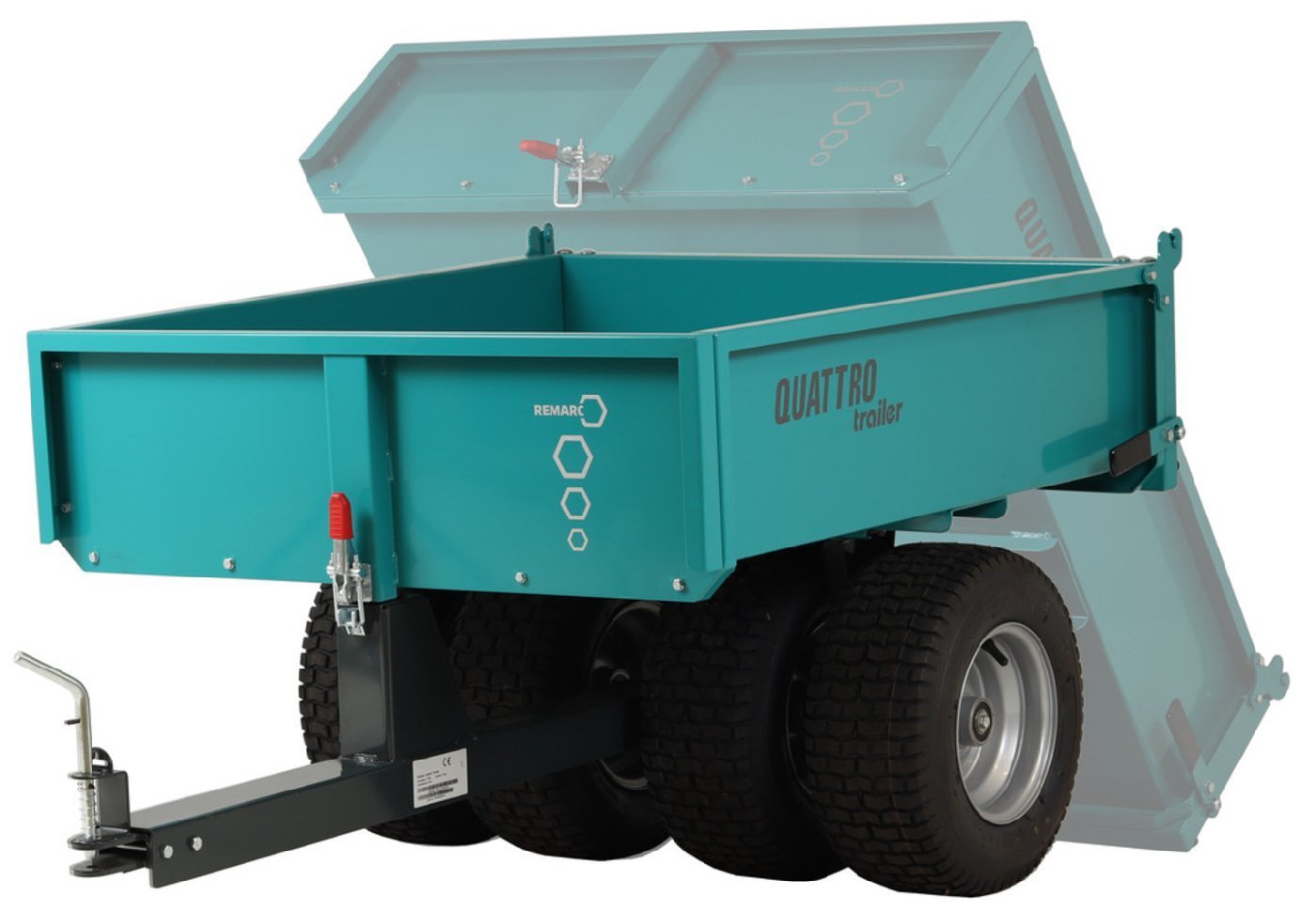 Sehr kompakter und wendiger Anhänger. Dank der vier nebeneinander platzierten großen Räder wird auch unwegsames Gelände bestens gemeistert.