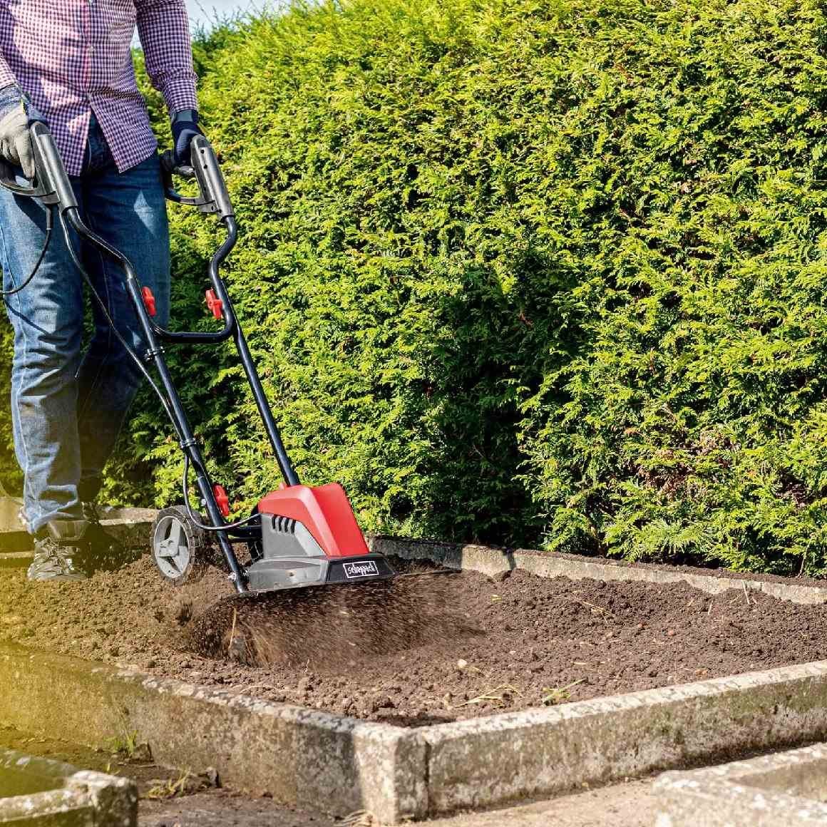 Mit der Elektro-Motorhacke MTE460 von scheppach Arbeiten Sie ohne lästige Abgase. Die kompakte Bauweise und die robusten Messer sind ideal für den Einsatz in kleineren Gärten. Egal ob bei Neuanlage oder Vorbereitung zur Aussaat.