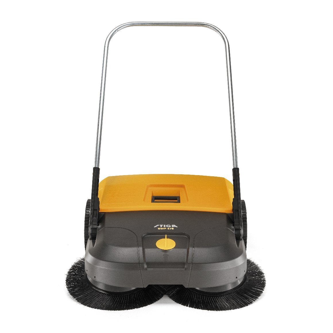 Die STIGA Kehrmaschine SWP 475 für den Außenbereich ohne Antrieb nimmt Staub, Schmutz wie Laub, Papier und Dosen auf und kann auf harten und betonierten Oberflächen wie Zufahrten, Gehwegen, Parkplätzen und anderen Flächen bis 2.900 m² eingesetzt werden. Diese einfach zu bedienende und wendige Kehrmaschine ist leise und eignet sich ideal für mittelschwere Aufgaben dank zweier gegenläufiger Rotationsbürsten (410 mm Durchmesser), die auf acht verschiedene Höheneinstellungen eingestellt werden können, einer großen Bürste an der Unterseite und einem 50 Liter Schmutzbehälter. Die Kehrmaschine verfügt zudem über 250 mm Gummiräder für eine reibungslose und komfortable Verwendung.