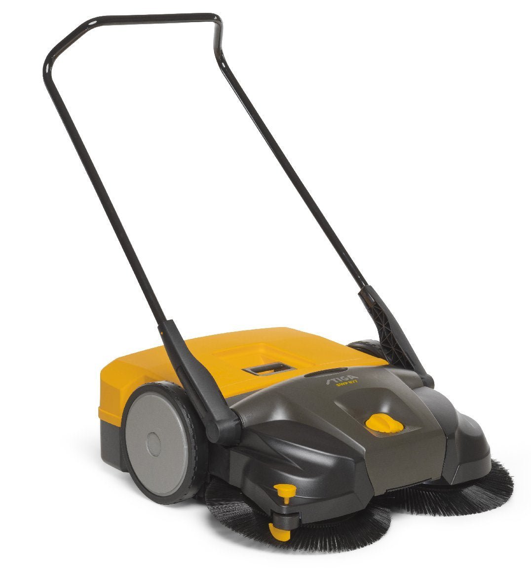 Die STIGA Handkehrmaschine SWP 577 ist leistungsstark und eignet sich sowohl für den Innen- als auch den Außenbereich auf Flächen bis 3.000 m². Diese leise Kehrmaschine nimmt Staub, Schmutz wie Laub, Papier und Dosen auf und kann auf harten oder betonierten Oberflächen wie Zufahrten und Gehwegen eingesetzt werden. Das effektive Reinigungssystem besteht aus zwei gegenläufigen Rotationsbürsten (410 mm Durchmesser), die einfach auf acht verschiedene Höheneinstellungen eingestellt werden können, einer großen Bürste an der Unterseite und einem 50 Liter Schmutzbehälter. Zwei Feinstaubfilter zwischen dem Schmutzbehälter und der Vorderseite des Gehäuses verhindern, dass selbst kleinste Partikel entweichen. Das Schutzgehäuse des Mechanismus gewährleistet Langlebigkeit. Der Komfort wird durch die 275 mm Gummiräder erhöht, die eine gute Bodenhaftung und einen ergonomischen und umkehrbaren Griff bieten. Der SWP 577 bietet eine 77 cm Arbeitsbreite und eignet sich ideal für herausfordernde Aufgaben.