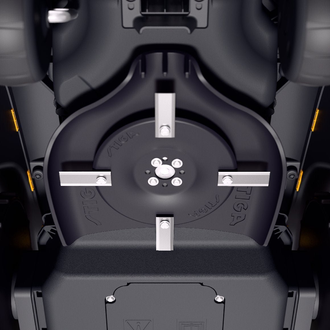 Der Neigungssensor stellt sicher, dass bei Überschreitung der maximalen Hangneigung die Fahrtrichtung geändert wird. Bei einem Überschlag wird der Fahrantrieb und der Mähmotor gestoppt.