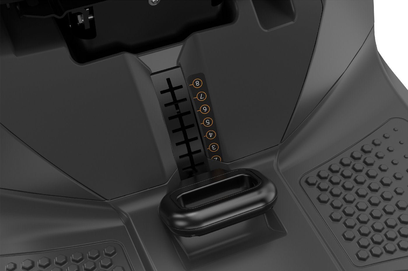 Mit dem leichtgängigen, zentral angebrachten Hebel kann das Mähdeck in 8 verschiedene Höhen eingestellt werden. Anschließend lassen sich mit STIGAs intelligentem Schneidemodus drei unterschiedliche Messergeschwindigkeiten wählen: Eco (2.800 U/min) für sehr häufiges Mähen von weichem Gras oder wenn Sie sich entscheiden, das Gras zu mulchen; Standard (3.000 U/in) für normale, wöchentliche Mähsitzungen und Schnitte bis zu 2,5 cm, und Boost (3.200 U/min) für schnellere Mähaufgaben oder dickeres, höheres Gras.