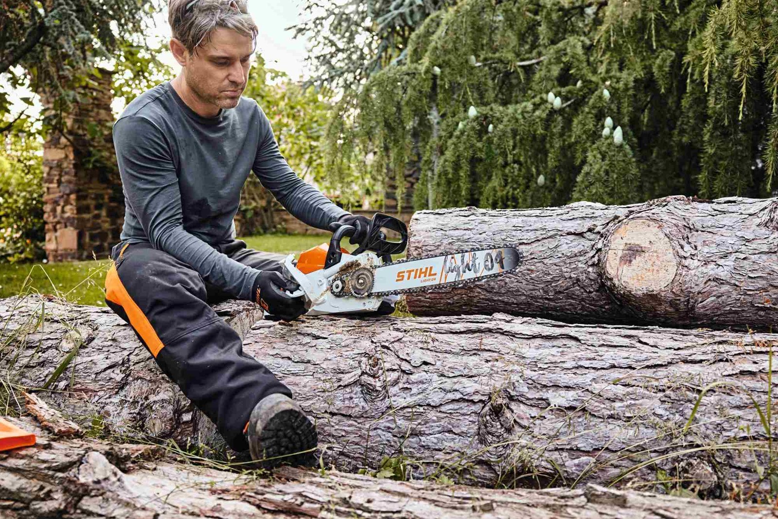 SORGT FÜR EIN KOMFORTABLES ARBEITEN. Ihre STIHL Motorsäge besitzt ein ergonomisch geformtes Griffrohr und einen komfortablen, hinteren Bediengriff mit Weichkomponenten. Dank dieser Zweihandbedienung arbeiten Sie in allen Lagen angenehm, kräftescho…