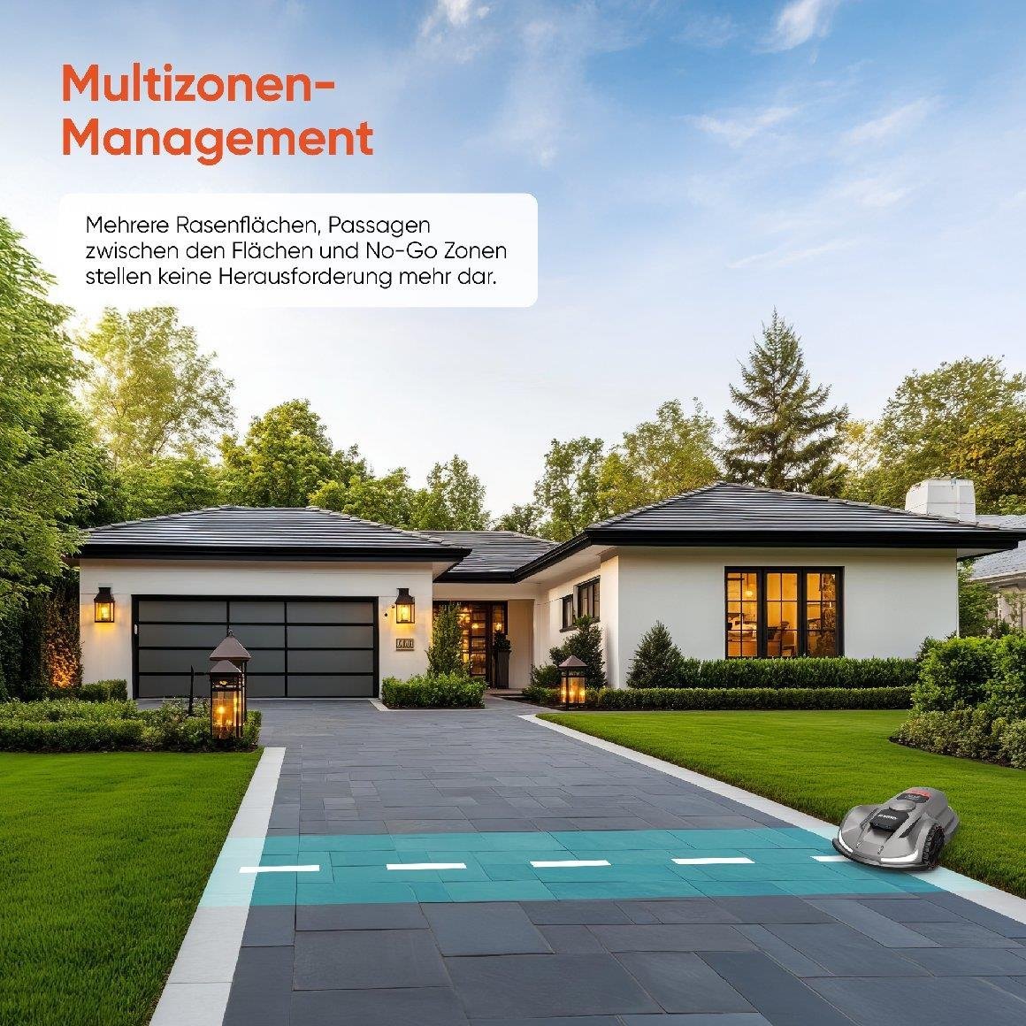 Smart Sensors & Boundary Optimierung: Passen Sie virtuelle Grenzen für eine präzisere Mähleistung an.