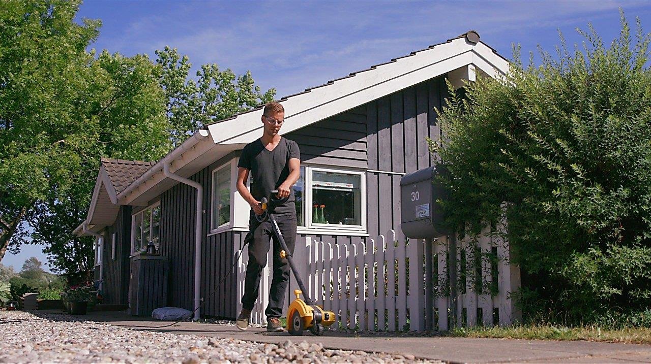 Die mitgelieferte Fugenbürste kann anstelle des Messers montiert werden. Dadurch wird es leicht möglich, Unkraut zwischen den Platten zu entfernen oder die Fugen zu säubern.