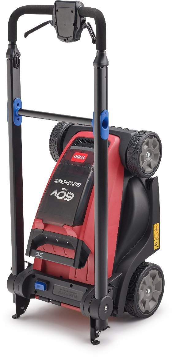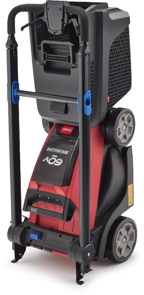 Vertikales Kippen ja, Toro SmartStow, steht dann auf nur 42 cm x 42 cm Fläche